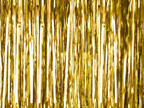 Cortina de festa dourada com 90cm de largura e 250cm de comprimento.