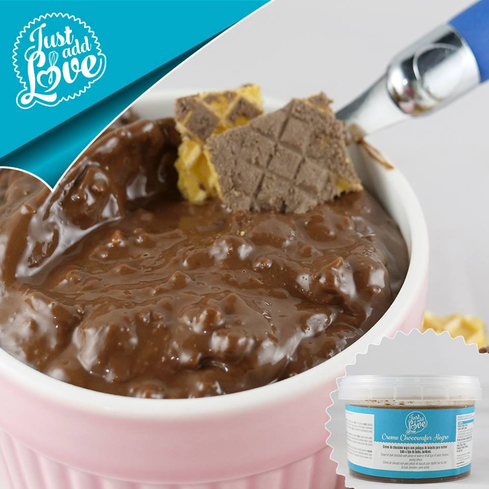 Creme de chocolate negro com pedaços de bolacha para rechear todo o tipo de bolos, bombons.