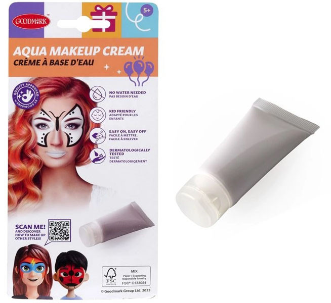 Tubo de tinta facial em creme para maquilhagem. Tinta líquida à base de água e de fácil remoção. Não adequado a menores de 3 anos. Testado dermatologicamente