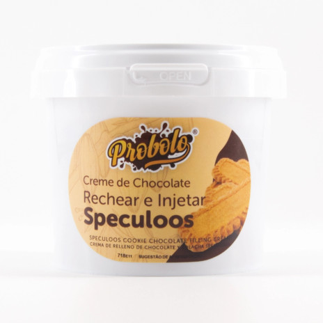 Designação Técnica Creme de chocolate com pedaços de bolacha speculoos crocante, indicado para rechear, injetar, cobrir e pré-cobertura de produtos de pastelaria.