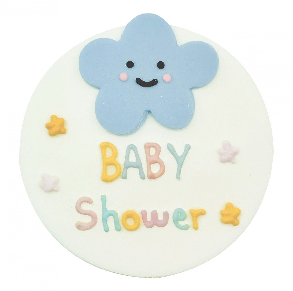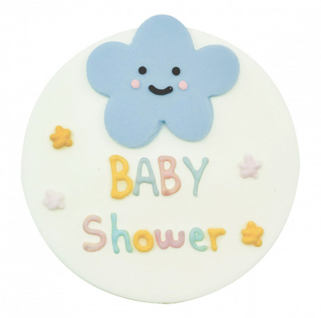 Disco comestivel de açúcar para utilizar como topper decorativo em bolos para festas baby shower ou chá de bebé.