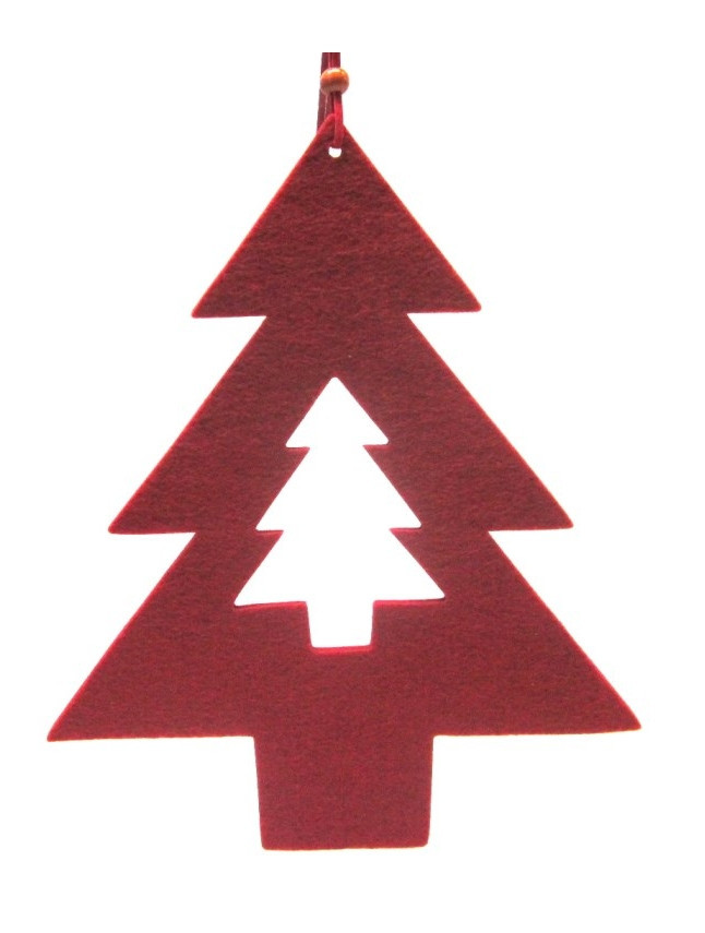 Decore o seu natal com este apontamento de árvore de natal vermelha em feltro para pendurar.