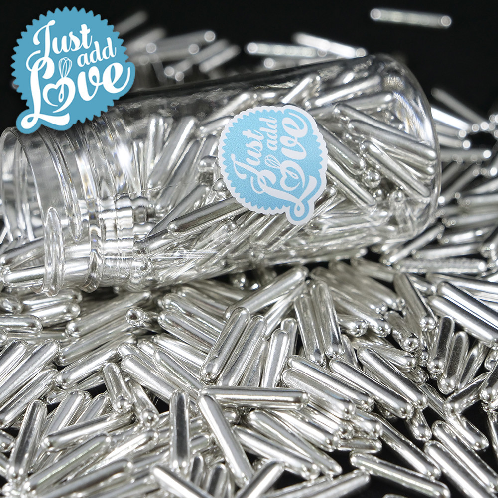 Composição: açúcar (78.6%), sêmola de trigo, corante: prata (E174), estabilizador: goma arábica e gelatina (peixe). Pode conter vestígios de leite, soja e frutos secos.