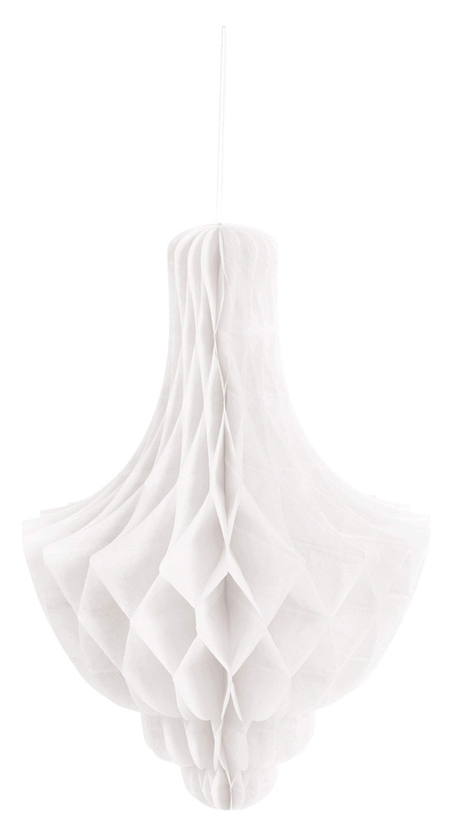 1 candelabro decorativo em papel seda no tom branco, com 35cm de altura.