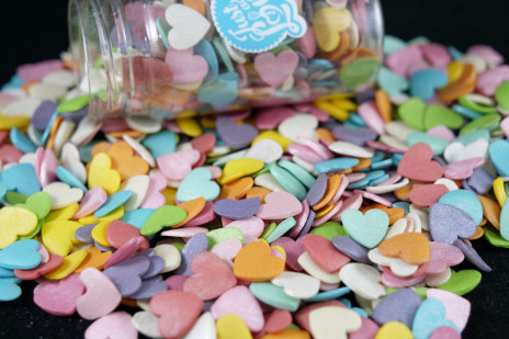 Composição: açúcar, dextrose, amido de batata, óleo de girassol, farinha de arroz, corantes: E101, E120, E132, E133, E141, E171 e agente de revestimento: goma-laca.