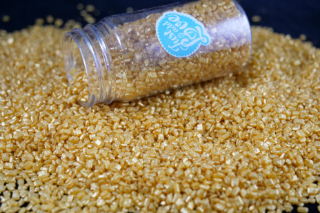 Composição: açúcar, corantes: E101, E171, E172, E555 e agente de revestimento: goma-laca.
