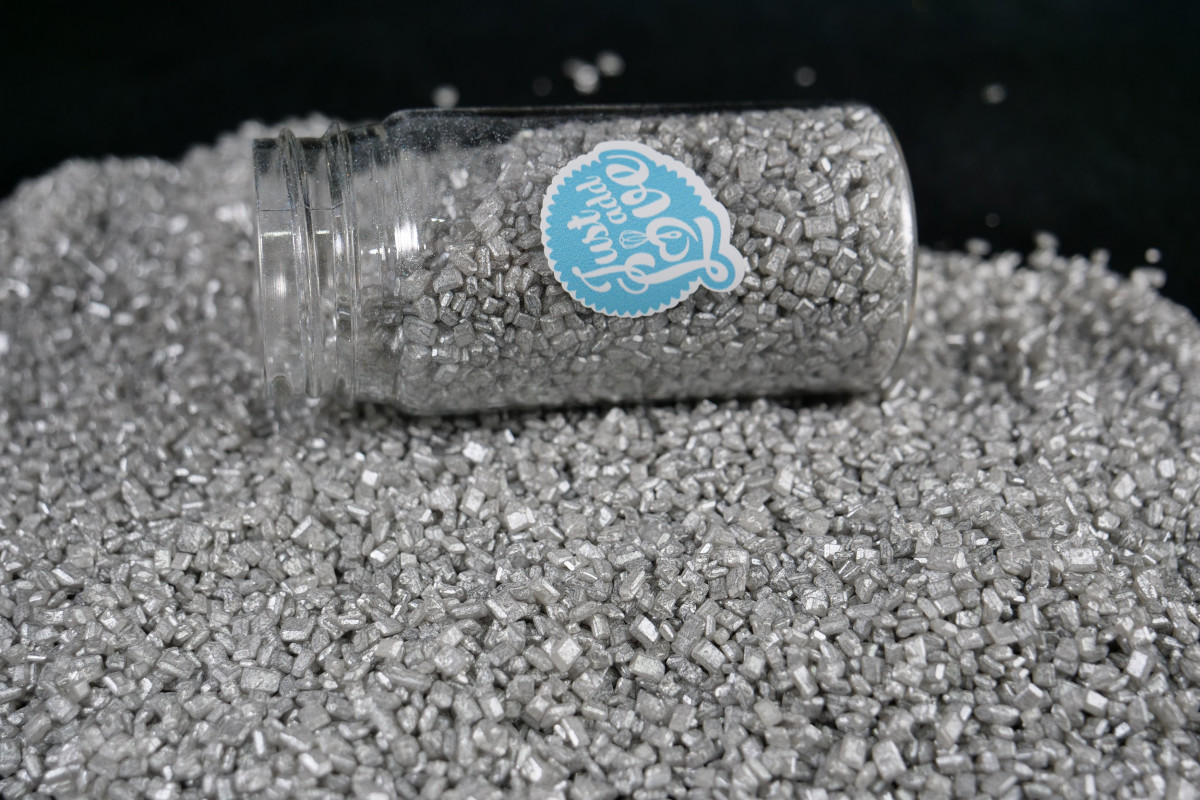 Composição: açúcar, corantes: E153, E171, E555 e agente de revestimento: goma-laca.