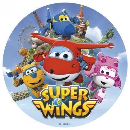 Disco de obreia ou hóstia para a decoração do bolo de aniversário dos Super Wings, diâmetro 20cm .