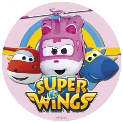 Disco de obreia ou hóstia para a decoração do bolo de aniversário dos Super Wings, diâmetro 20cm .