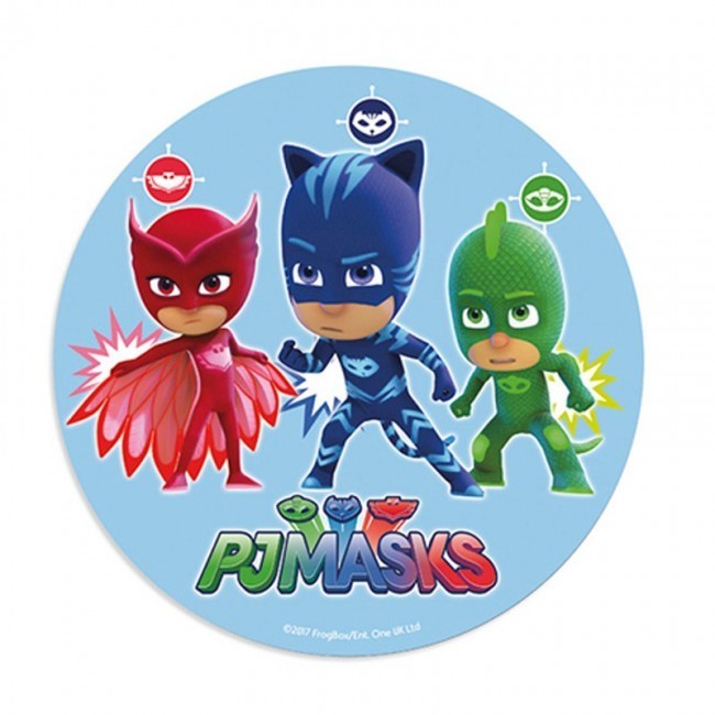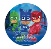 Disco de obreia ou hóstia para a decoração do bolo de aniversário com os PJ Masks, diâmetro 20cm .