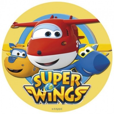 Disco de obreia ou hóstia para a decoração do bolo de aniversário com os Super Wings, diâmetro 20cm .