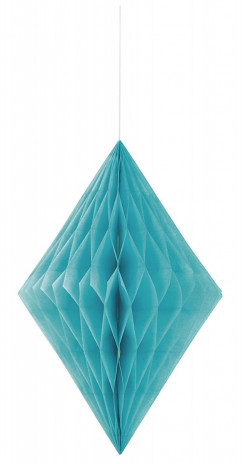 1 diamante de papel seda decorativo em tom de azul turquesa, com 35cm de altura.