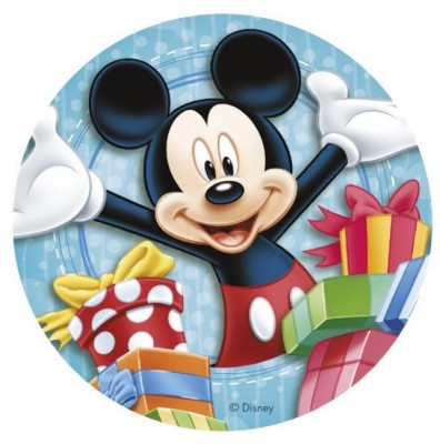 Disco comestível (de açúcar) de 15g para a decoração do bolo de aniversário com o Mickey, diâmetro 20cm .Fechada hermeticamente e própria para uso culinário.Informação nutricional:- sem gluten- ingredientes: fecula de milho modificada, maltodextrina, glicerina, açucar, água, dextrose, estabilizadores E460i e E414, emulsionantes E435, E471 e E491, conservantes E330 e E202, aroma baunilha, corantes E171, E133, E151, E155 e E162.
