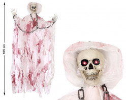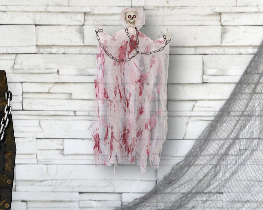 Elemento decorativo de halloween de esqueleto suspenso com luz e som. Decore qualquer sala ou divisão de casa com este esqueleto medonho. É perfeita para criar um ambiente ainda mais aterrador e surpreenderá todos os seus convidados na noite das bruxas.