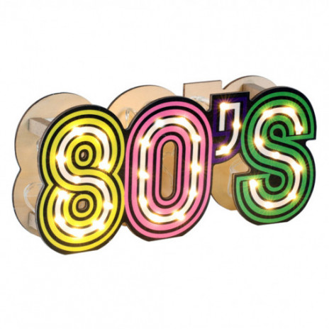 De volta aos... anos 80! Para as suas noites temáticas, o que poderia ser mais moderno do que os anos 80? Cultura pop, música dinâmica, cores neon nas roupas! Com esta decoração luminosa, mergulhe os seus convidados na década de 80!