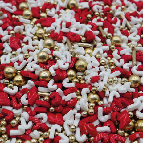 Mistura de decorações de açúcar, com figura natalícias para decoração de bolos, bolachas, cake pops, donuts, sobremesas e outras.