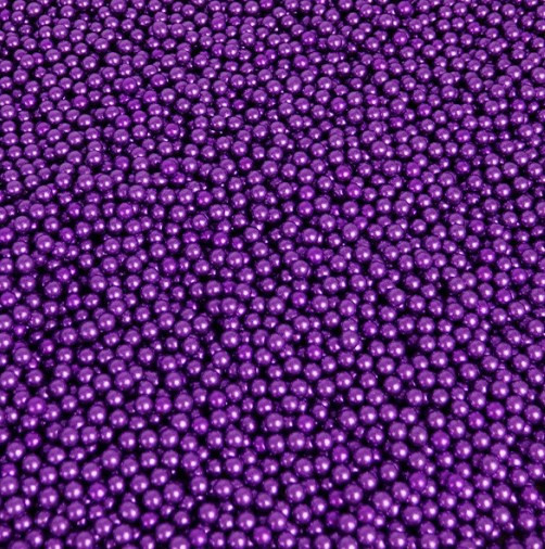Decoração para todo o tipo de bolos, umas pérolas metalizadas em violeta com 7mm, em embalagem de 65g. Cores vibrantes e intensas para decoração de bolos de natal.