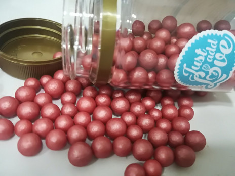 Pérolas grandes, de 8mm, vermelhas para decoração de todo o tipo de bolos, de 70g vendido em frasco de rosca.