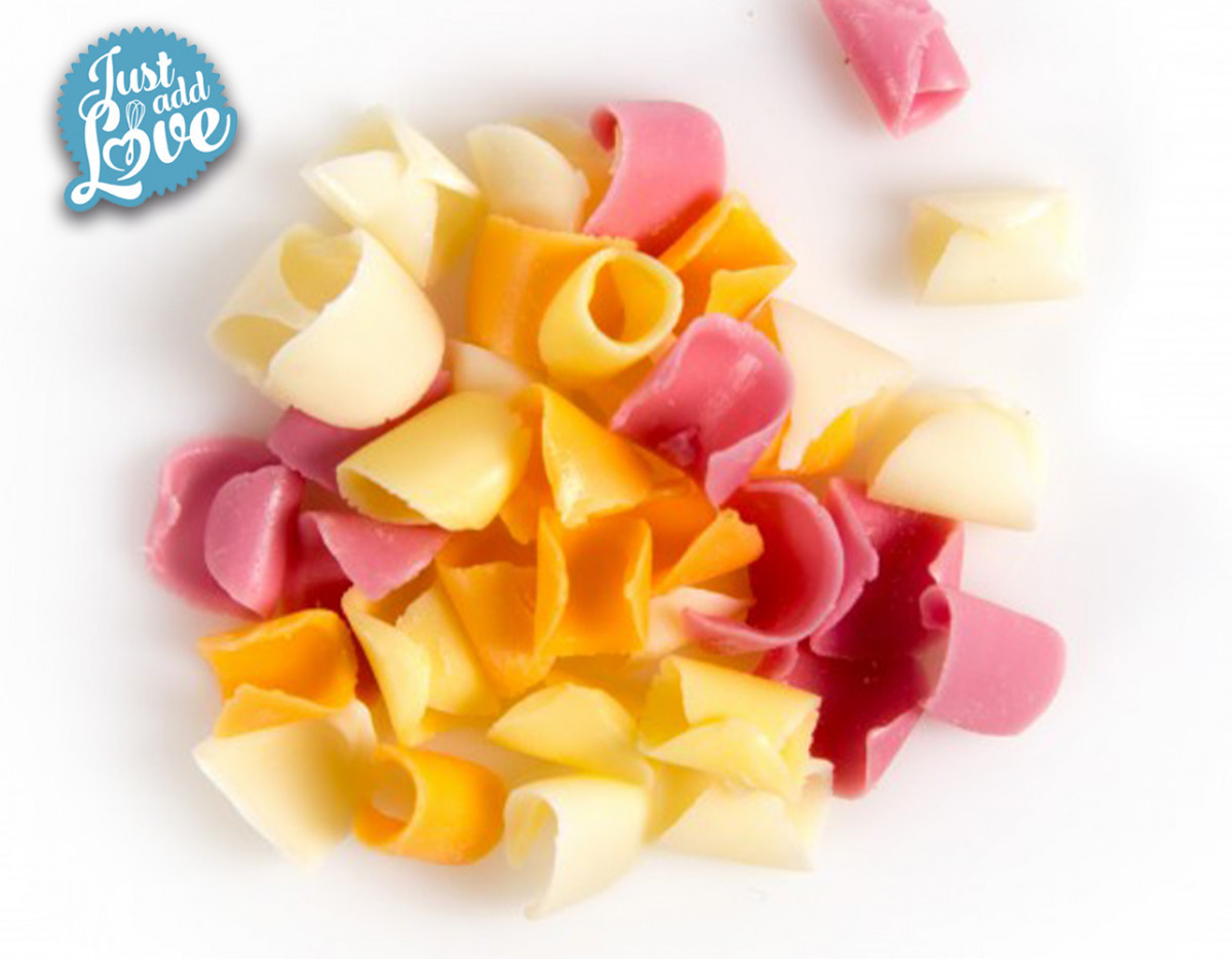 Composição: açúcar, manteiga de cacau, leite integral em pó gordo, lactose, emulsionante: lecitina de soja (E322), aromatizantes de baunilha natural, extrato de cenoura, extrato de spirulina, concentrado de carthamus e corante: E160c, E162.