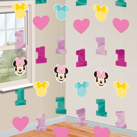 Decoração de porta ou decoração suspensa do Minnie 1ºAniversário com 6 decorações individuais com 2.13m.