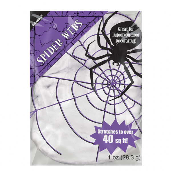 Para decoração da sua festa de Halloween, uma teia de aranha branca. É medonha.