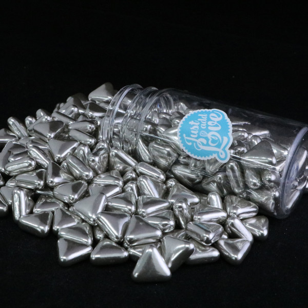 Composição: açúcar (96.7%), xarope de glicose, antiaglomerante: sais de magnésio de ácidos graxos, gelatina (bovina e de peixe), estabilizante: goma arábica, corante: prata (E174), urucum e agente de revestimento: goma laca. Pode conter vestígios de glúten, frutos secos e leite.