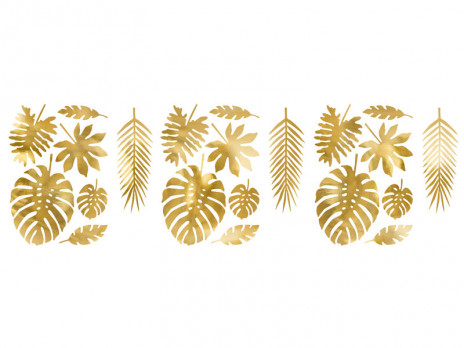 Conjunto de 21 decorações em papel Aloha - Folhas tropicais na cor ouro metálico, conjunto com 7 formatos de leafes (3 unidades de cada formato). Ideal para decoração de festas, tropicais e havaianas. Ou para dar um pormenor em qualquer evento.