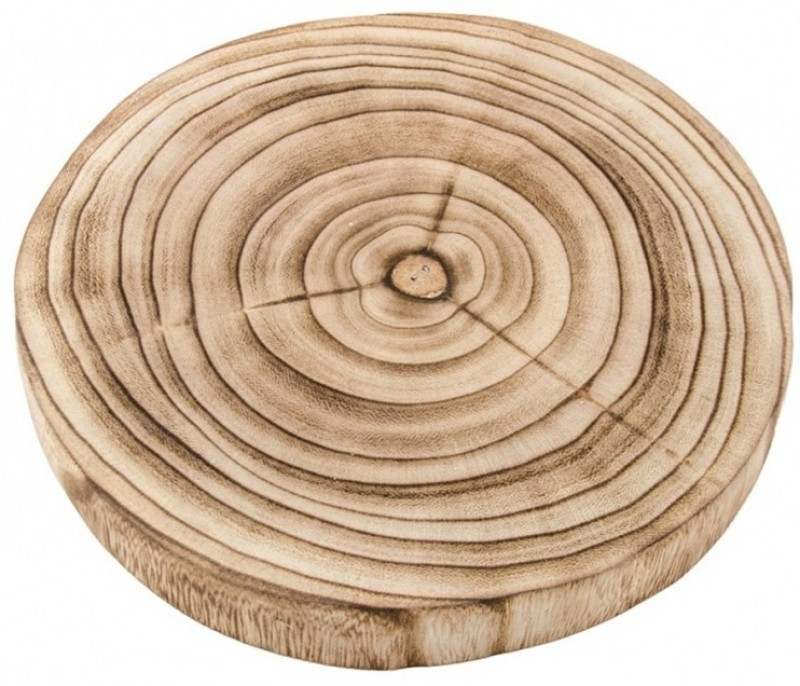 Disco em madeira natural com estrias com cerca de 23cm de tronco liso. Pode ser usado como decoração de mesa, tripé, peça central, uma bandeja, ou em temas como natureza, floresta, montanha, entre outros.