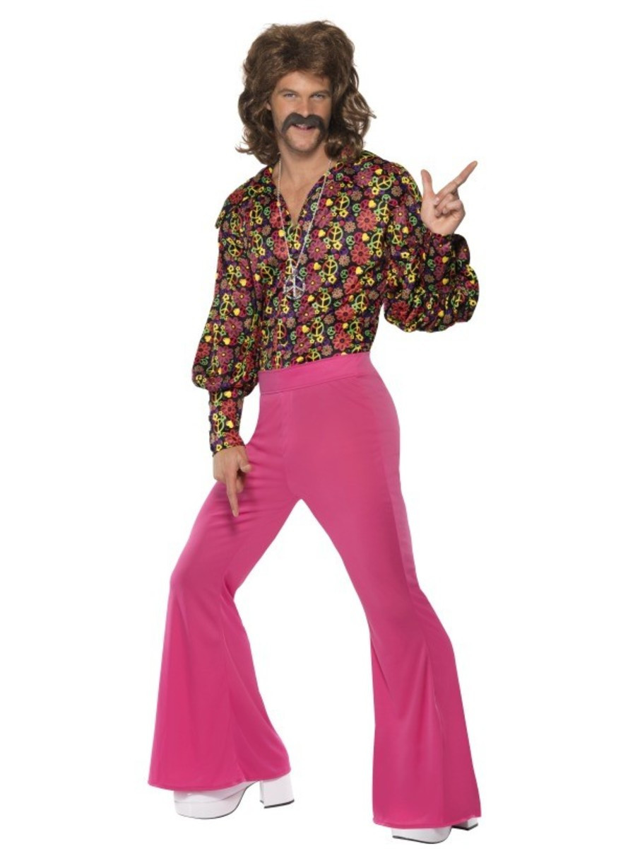 Fato de Carnaval para homem de Anos 60. Divirta-se neste Carnaval com este disfarce composto por camisa de manga comprida ao estilo da época e calças cor de rosa à boca de sino.