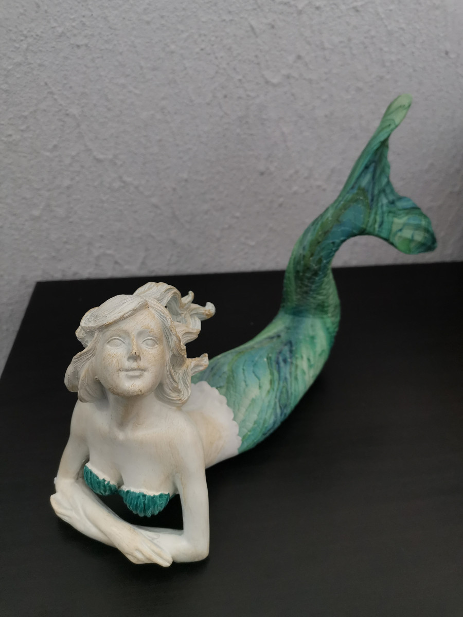 Escultura em poliresina de sereia para decoração de festa do mesmo tema ou de mar. Com material antiderrapamente na base.