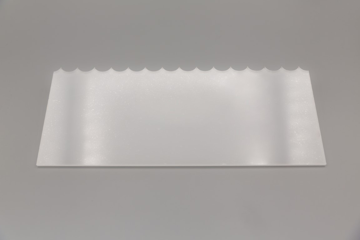 Espátula alisador lateral em acrílico para cremes. Dará o acabamento perfeito ao seu bolo. Com uma textura diferente de cada lado da espátula. Higiénico e de fácil lavagem.