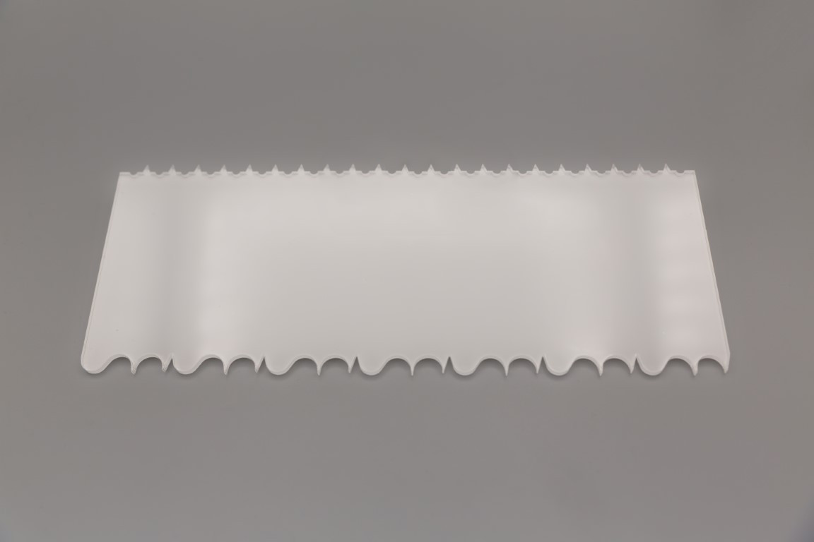 Espátula alisador lateral em acrílico para cremes. Dará o acabamento perfeito ao seu bolo. Com uma textura diferente de cada lado da espátula. Higiénico e de fácil lavagem.