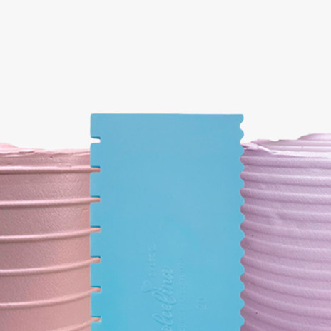 Faça decorações incríveis em chantilly, buttercream, com esta Espátula Decorativa para bolos e tartes. A ferramenta perfeita para transformar bolos simples numa verdadeira obra de arte. São resistentes, produz um resultado homogêneo a toda circunferência do bolo. Cada lado da espátula produz uma decoração diferente. Crie texturas atraentes, padrões delicados e detalhes impressionantes.