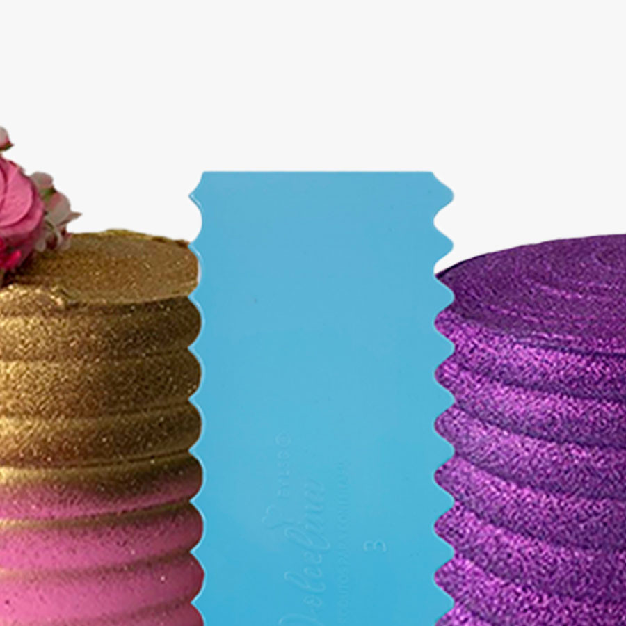 Faça decorações incríveis em chantilly, buttercream, com esta Espátula Decorativa para bolos e tartes. A ferramenta perfeita para transformar bolos simples numa verdadeira obra de arte. São resistentes, produz um resultado homogêneo a toda circunferência do bolo. Cada lado da espátula produz uma decoração diferente. Crie texturas atraentes, padrões delicados e detalhes impressionantes.