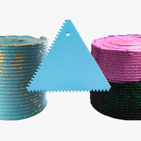 Faça decorações incríveis em chantilly, buttercream, com esta Espátula Decorativa para bolos e tartes. A ferramenta perfeita para transformar bolos simples numa verdadeira obra de arte. São resistentes, produz um resultado homogêneo a toda circunferência do bolo. Cada lado da espátula produz uma decoração diferente. Crie texturas atraentes, padrões delicados e detalhes impressionantes.