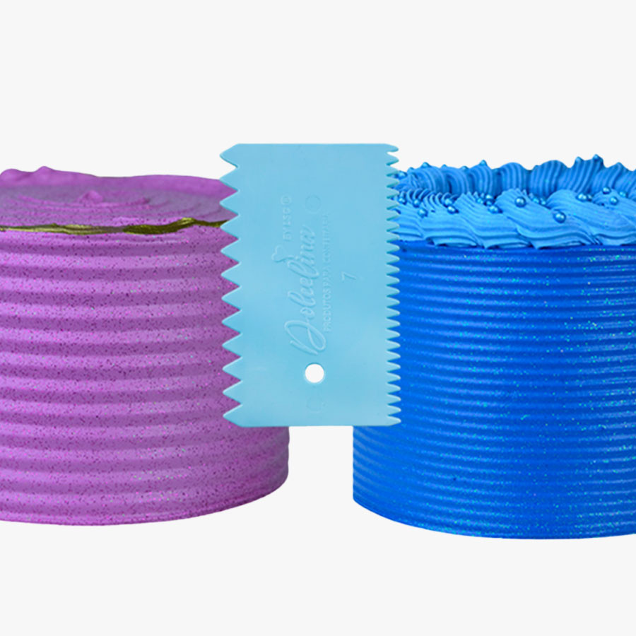 Faça decorações incríveis em chantilly, buttercream, com esta Espátula Decorativa para bolos e tartes. A ferramenta perfeita para transformar bolos simples numa verdadeira obra de arte. São resistentes, produz um resultado homogêneo a toda circunferência do bolo. Cada lado da espátula produz uma decoração diferente. Crie texturas atraentes, padrões delicados e detalhes impressionantes.