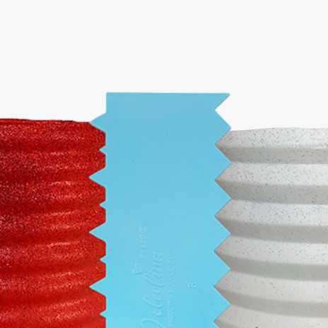 São resistentes, produz um resultado homogêneo a toda circunferência do bolo. Cada lado da espátula produz uma decoração diferente.