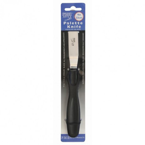 Espátula da PME com lâmina em ângulo. Esta espátula é perfeita para espalhar glacê real, creme de manteiga ou qualquer outra coisa no seu bolo. Esta faca possui um cabo de plástico ergonomicamente projetado e é fácil de usar. Próprio para máquina de lavar louça.