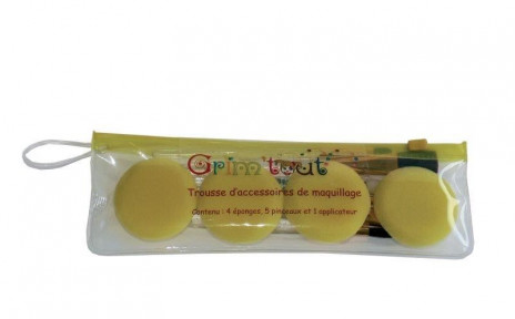 Estojo de acessórios de maquilhagem de pinturas faciais para festa. Inclui um estojo com 4 esponjas, 5 pincéis de diferentes tamanhos e 1 aplicador de sombra da marca Grim'tout.