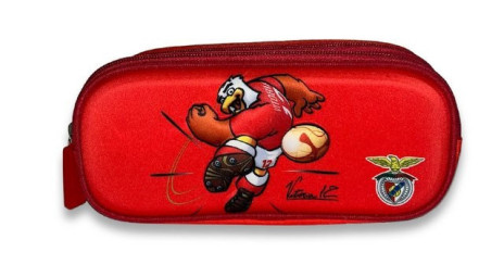 Estojo escolar com dois compartimentos com a Águia Vitória do Sport Lisboa e Benfica em 3D. Com pega para facilitar o transporte.