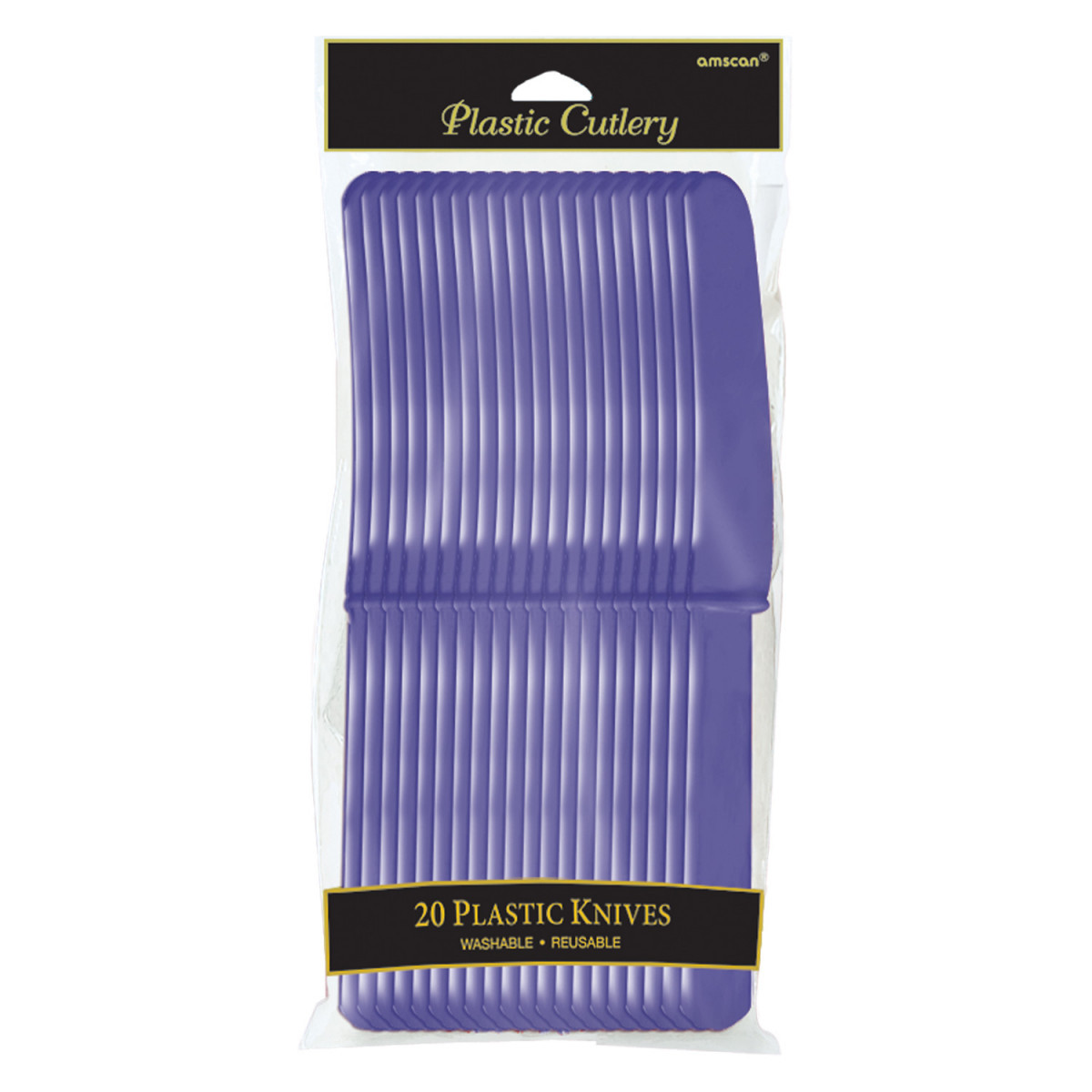 Pack de 10 unidades de facas de plástico na cor roxa. Ideal para festas aniversário.
