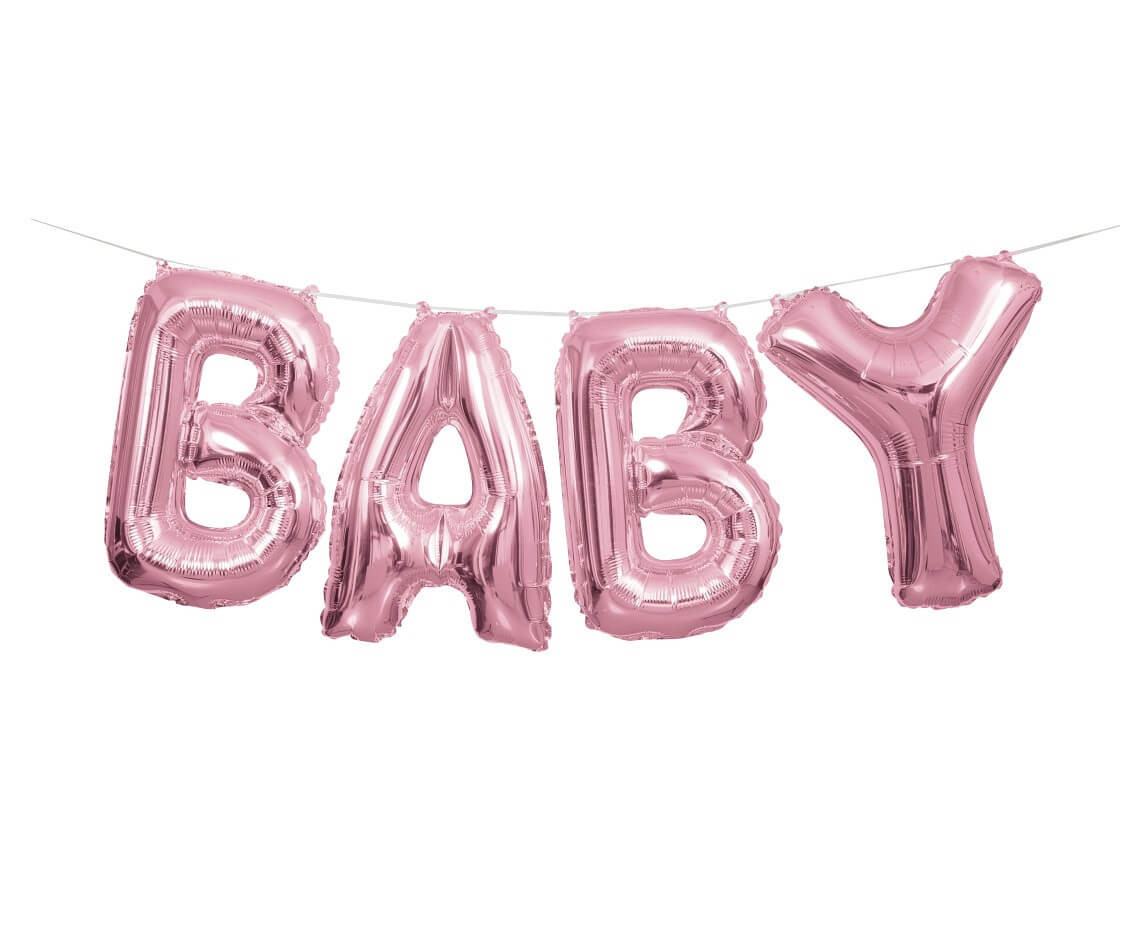 Grinalda com a palavra baby em tom cor de rosa para festas de aniversário ou baby showers.