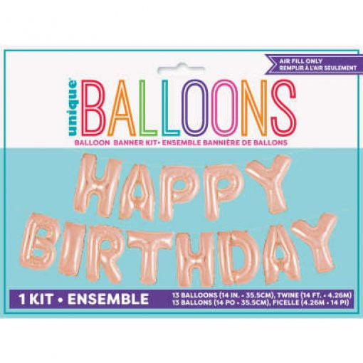 Faixa Banner de Balões Happy Birthday Rose Gold