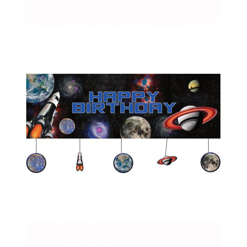Faixa decorativa ou banner para decoração para festa de aniversário com o tema Espaço.
