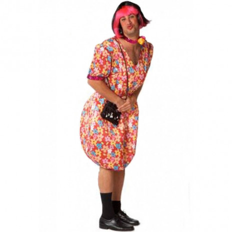 Um fato vestido de mulher, para homem, a conhecida matrafona, com enchimento no peito e na saia para fazer volume. tamanho 52