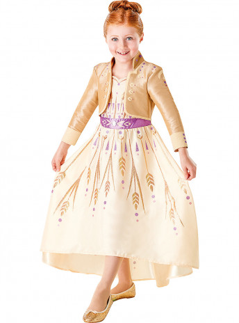 Disfarce infantil da Anna do novo filme Frozen 2 da Disney em dourado.