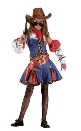 Fato de Bandida do Texas tudo incluído exceto óculos, pistolas e coldre, meias e sapatos.