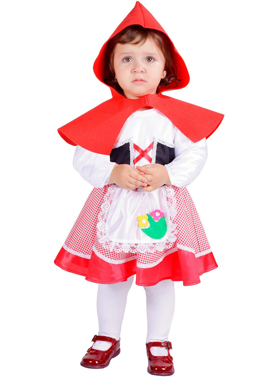 Fato de carnaval para Bebé Capuchinho vermelho. Inclui vestido e uma fita de cabelo. Disponível no tamanho 18 meses.