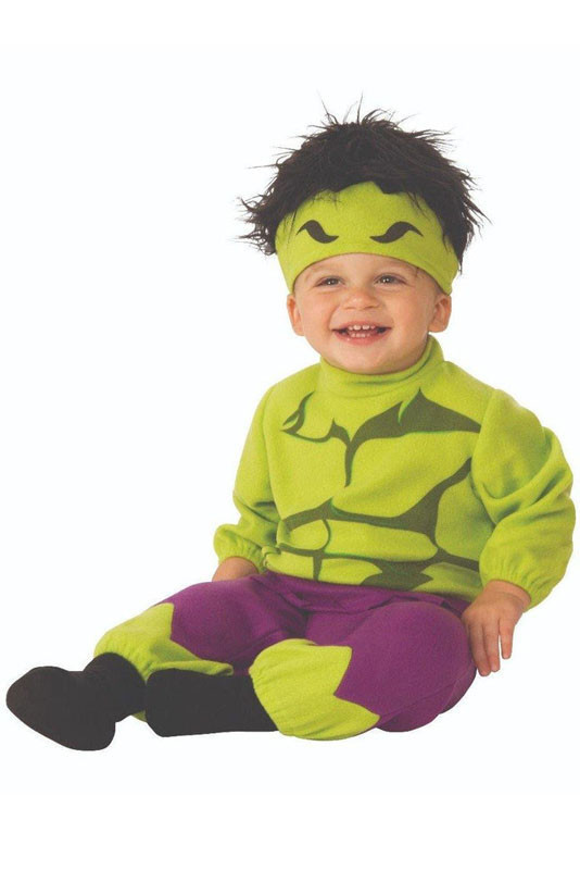 Disfarce de carnaval para bebé do Hulk dos Avengers da Marvel.