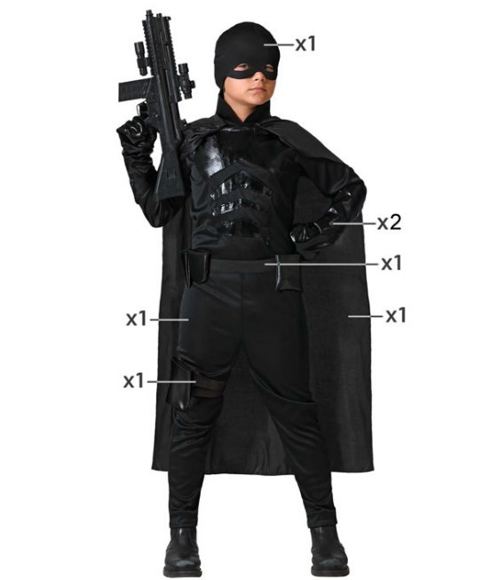 Fato de herói negro para menino para brincar ou festejar o carnaval. Inspirado no super herói, Batman da DC Comics.